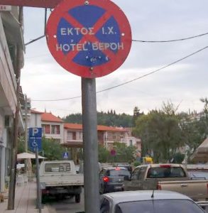 Αρκετά χρόνια τώρα έχει κλείσει το ξενοδοχείο «Βερόη» στην πλατεία Ωρολογίου, ωστόσο η πινακίδα απαγόρευσης στάσης και στάθμευσης παραμέν