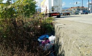 Η πολλοστή φορά που γεμίζει σκουπίδια περαστικών το αυλάκι στον δρόμο από τη διασταύρωση Νάουσας προς τον σιδηροδρομικό σταθμό. Αυτή τη φο?