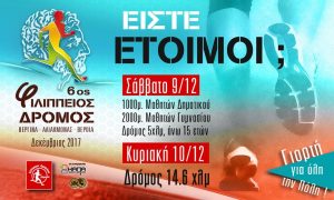 Ενόψει του 6ου Φιλίππειου δρόμου που θα γίνει το Σάββατο 9/12 και Κυριακή 10/12 η οργανωτική επιτροπή προσκαλεί τους πολίτες της Βέροιας να σ