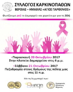 Στο πλαίσιο της εκστρατείας για τον καρκίνο του μαστού ο Δήμος Βέροιας , το ΚΕΠ Υγείας , το Ν.Π. ΚΑΠΑ, η κοινωφελής επιχείρηση ΚΕΠΑ, ο Σύλλογος