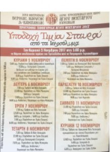 Την Κυριακή 5 Νοεμβρίου στις 5:00 μ.μ. τα Κύμινα υποδέχονται τεμάχιο του Τιμίου Σταυρού από το Πατριαρχείο Ιεροσολύμων στον Ιερό Ναό Αγίου Νεκ