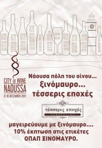 Τριήμερο ξινόμαυρου στη «Νάουσα Πόλη του Οίνου» 8-10 Δεκεμβρίου στον πολυχώρο πολιτισμού Χρ. Λαναράς (αίθουσα Έρια). Με το…