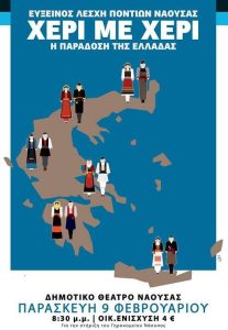 Με τα έσοδα για το Γηροκομείο Νάουσας οργανώνεται από την Εύξεινο Λέσχη Ποντίων Νάουσας η μουσικοχορευτική παράσταση «ΧΕΡΙ ΜΕ ΧΕΡΙ η…