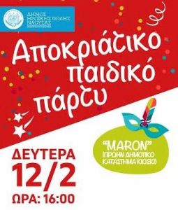 Παιδικό μασκέ πάρτι διοργανώνει τη Δευτέρα 12 Φεβρουαρίου ο δήμος Νάουσας, στις 4 το απόγευμα στο “MARON” (πρώην δημοτικό κατάστημα…