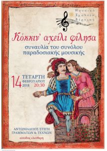 Ο άγιος Έρωτας γιορτάζει αύριο και το σύνολο Παραδοσιακής Μουσικής του Μουσικού Σχολείου Βέροιας δίνει συναυλία την Τετάρτη 14 Φλεβάρη 2018…