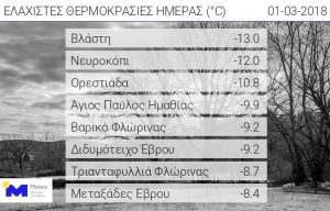 Στις κορυφαίες θέσεις των αρνητικών θερμοκρασιών φιγουράρει για μια ακόμη φορά η Ημαθία! Στον Άγιο Παύλο (Κουτσούφλιανη) το θερμόμετρο…