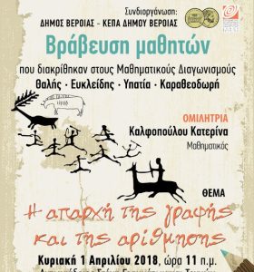Το Παράρτημα Ημαθίας της Ελληνικής Μαθηματικής Εταιρείας βραβεύει τους μαθητές, που διακρίθηκαν στους Μαθηματικούς Διαγωνισμούς «Θαλής»,