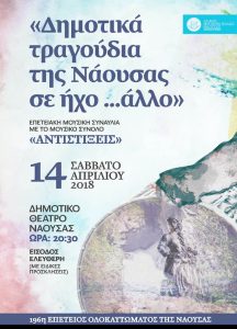 Ο Δήμος Ηρωικής Πόλης Νάουσας στο πλαίσιο εορτασμού της 196ης Επετείου Ολοκαυτώματος της πόλης, παρουσιάζει τη μουσική συναυλία «Δημοτικά…