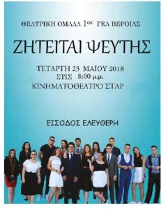 Οι Σύλλογοι Καθηγητών και Γονέων και Κηδεμόνων του 1ου ΓΕΛ Βέροιας, σας προσκαλούν στην παράσταση της θεατρικής Ομάδας του σχολείου…
