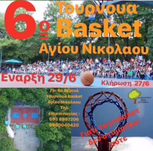 Στις 29 Ιουνίου ξεκινά το 6ο τουρνουά basket Αγίου Νικολάου. Μέσα στο μοναδικού κάλους άλσος του Αγίου Νικολάου, οι λάτρεις της…