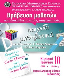 Την Κυριακή 10 ΙουνίουΤο Παράρτημα Ημαθίας της Ελληνικής Μαθηματικής Εταιρείας με την αιγίδα της Διεύθυνσης Πρωτοβάθμιας Εκπαίδευσης…