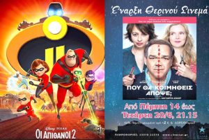 Αιθ1: (κλιματίζεται)ΟΙ ΑΠΙΘΑΝΟΙ 2 – INCREDIBLES 2 (ΜΕΤΑΓΛ.)Σκηνοθεσία/ Σενάριο: ΜΠΡΑΝΤ ΜΠΕΡΝΤΗθοποιοί: ΤΙΣ ΦΩΝΕΣ ΤΟΥΣ ΔΑΝΕΙΖΟΥΝ ΟΙ:, ΘΑΝΑΣΗΣ…