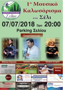 Το Σάββατο 7 ΙουλίουΟ Πολιτιστικός Τουριστικός Όμιλος Σελίου διοργανώνει γλέντι για την έναρξη της καλοκαιρινής περιόδου στο Σέλι.Το…