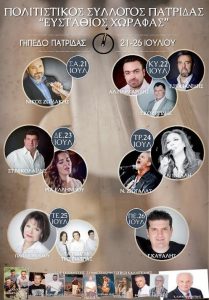 Με Νίκο Ζωιδάκη ξεκινούν σήμερα Σάββατο 21 Ιουλίου οι πολιτιστικές εκδηλώσεις του Συλλόγου Πατρίδας «Ευστάθιος. Χωραφάς», στο γήπεδο της…