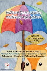 Το Σάββατο 22 Σεπτεμβρίου 2018 στις 6.00+ μ.μ. εγκαινιάζεται στο Φουαγιέ της Αντωνιαδείου Στέγης Γραμμάτων και Τεχνών η ομαδική έκθεση του…