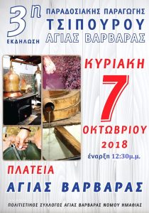 O πρόεδρος και τα μέλη του Δ.Σ. του Πολιτιστικός Σύλλογος Αγίας Βαρβάρας, σας προσκαλούνε, την Κυριακή 7 Οκτωμβριού 2018 στην 3η Εκδήλωση…