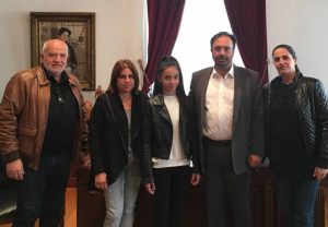 Τη νεαρή αθλήτρια της Ρυθμικής Γυμναστικής του Α.Ο. Αλέξανδρος, Φωτεινή Παυλίδου, η οποία συνοδευόταν από τη μητέρα της και την προπονήτρια.