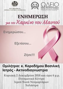Το Ωδείο της Ιεράς Μητροπόλεως Βεροίας, Ναούσης και Καμπανίας διοργανώνει ομιλία – ενημέρωση για τον καρκίνο του μαστού, την Κυριακή 2…