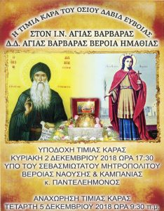 Την Τρίτη 4 Δεκεμβρίου μνήμη της Αγίας Ενδόξου Μεγαλομάρτυρος Βαρβάρας πανηγυρίζει ο Ιερός Ναός Αγίας Βαρβάρας Δ.Δ. Αγίας Βαρβάρας. Οι…