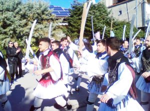 Ντυμένοι με βαριές φορεσιές, καθώς η παραδοσιακή φουστανέλα χρειάζεται πολλά μέτρα υφάσματος, αρματωσιά, τσαρούχια και κρατώντας ξύλινα…
