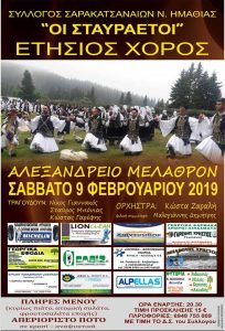 χορό του Συλλόγου μας που θα γίνει το Σάββατο 9 Φεβρουαρίου 2019 και ώρα 8:30