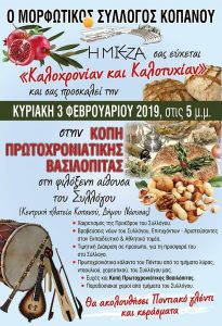 Ο Μορφωτικός Σύλλογος Κοπανού “Η ΜΙΕΖΑ” σας προσκαλεί στην κοπή της Πρωτοχρονιάτικης Βασιλόπιτας του την Κυριακή 3 Φεβρουαρίου 2019 και ώρα…