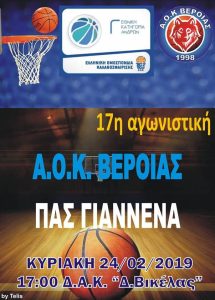 Μπάσκετ Γ’ Εθνική. Με στόχο την νίκη ο ΑΟΚ Βέροιας υποδέχεται τον ΠΑΣ Γιάννενα
