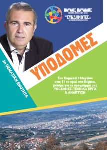 Την Κυριακή 3 Μαρτίου 2019, στις 11 το πρωί, η Ανεξάρτητη Κίνηση Πολιτών δήμου Βέροιας «ΣΥΝΔΗΜΟΤΕΣ» και ο επικεφαλής της υποψήφιος δήμαρχος…
