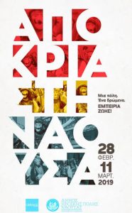 O Δήμος Ηρωικής Πόλης Νάουσας διοργανώνει τις εκδηλώσεις «Νάουσα-Αποκριά 2019» το διάστημα από 28 Φεβρουαρίου έως 11 Μαρτίου. Οι αποκριάτικες…