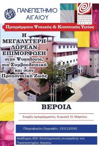 Το Πανεπιστήμιο Αιγαίου, Επιστημονικός συνεργάτης του ΚΕΚ Ακάδημος, διεξάγει στη Βέροια το ΔΩΡΕΑΝ εκπαιδευτικό πρόγραμμα (9…
