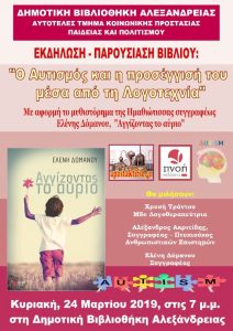 Οι Εκδόσεις Πνοή, το πολιτιστικό περιοδικό apostaktirio.gr και η Ημαθιώτισσα συγγραφέας Ελένη Δόμανου, παρουσιάζουν το βιβλίο «Ο Αυτισμός και η…