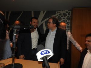 Στο πρώτο τραπέζι ο υποψήφιος δήμαρχος Βέροιας Αντώνης Μαρκούλης, απέναντι ακριβώς από τον υπουργό Ν. Παπά, ο οποίος του απευθυνόταν κατά…