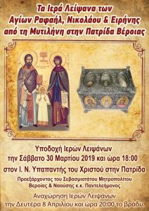 Ραφαήλ, Νικολάου και Ειρήνης από την Μυτιλήνη θα υποδεχθεί το Σάββατο 30 Μαρτίου