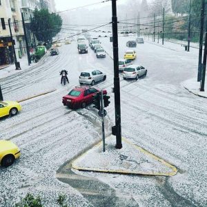 Και ο καιρός τρελάθηκε…Δεν πρόκειται για εικόνα από κάποια πόλη της βόρειας Ευρώπης, αλλά από το κέντρο της Αθήνας! Δρόμοι άσπροι από το…