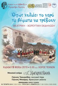 Το Λύκειο των Ελληνίδων – παράρτημα Βέροιας διοργανώνει    θεατρική- χορευτική εκδήλωση  με θέμα : « ‘Οπως κυλάει το νερό τα βήματα να…