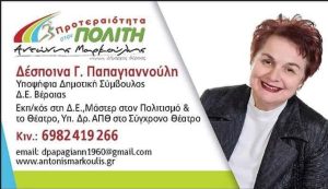 Της Δέσποινας Παπαγιαννούλη(Υποψήφια στο ψηφοδέλτιο του Αντώνη Μαρκούλη«Προτεραιότητα στον Πολίτη»)Αγαπητοί συμπολίτες και…