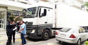 Έκπληκτοι πεζοί και μαγαζάτορες παρατηρούσαν λίγο μετά τις 12 το μεσημέρι της Παρασκευής, μια βαρέως τύπου νταλίκα να προσπαθεί να…
