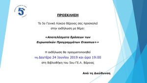 Βέροιας σας προσκαλεί στην εκδήλωση με θέμα: «Αποτελέσματα δράσεων των Ευρωπαϊκών Προγραμμάτων