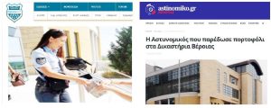 Το χθεσινό μας λαϊκό «Η Αστυνομικός που παρέδωσε πορτοφόλι στα Δικαστήρια Βέροιας», έγινε είδηση στις «αστυνομικές» ιστοσελίδες(σάιτς)…