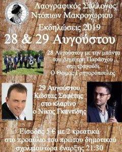Ο Λαογραφικός Σύλλογος Ντόπιων Μακροχωρίου και Περιχώρων για 26η Χρόνια διοργανώνει διήμερο παραδοσιακών εκδηλώσεων 28 και 29 Αυγούστου στο