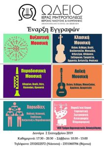 Βεροίας, Ναούσης & Καμπανίας ανακοινώνεται ότι από την Δευτέρα 2 Σεπτεμβρίου 2019 άρχισαν οι εγγραφές σε…