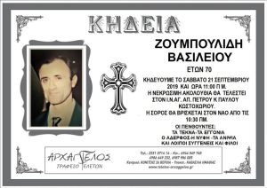 Μετά την μάχη που έδωσε με την επάρατη νόσο έφυγε από την ζωή ο Βασίλης Ζουμπουλίδης κτηματομεσίτης στο επάγγελμα αλλά για πολλά χρόνια…
