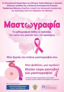 Στο Ακτινολογικό Εργαστήριο του Κ.Υ. Βέροιας θα διενεργηθούν επιπλέον μαστογραφίες την Πέμπτη 24 και Παρασκευή 25 Οκτωβρίου στα πλαίσια της..