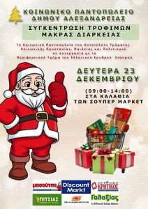 Τη Δευτέρα 23 Δεκεμβρίου και ώρες 09:00 – 14:00 στα καταστήματα super market Discount, Γαλαξίας, Κρητικός, Μασούτης, Πίτσιας, ΣκλαβενίτηςΤο Κοινωνικό…