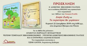 Η Δημοτική Βιβλιοθήκη Πλατέος, το Αυτοτελές Τμήμα Κοινωνικής Προστασίας, Παιδείας και Πολιτισμού και οι Εκδόσεις Ωρίωνας σας προσκαλούν…