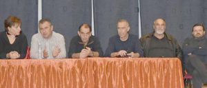O Πυθαγόρας Ιερόπουλος διαβάζει «εορταστικά» χρονογραφήματά του δημοσιευμένα σε παλιές εφημερίδες της Βέροιας. Στο πιάνο η Γιώτα…