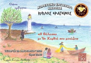 Ο Κύκλος Ερατεινός διοργανώνει μουσικοχορευτική εκδήλωση με τίτλο: “Η θάλασσα με την καρδιά σου μοιάζει”, την Τετάρτη 29 Ιανουαρίου 2020 στις.