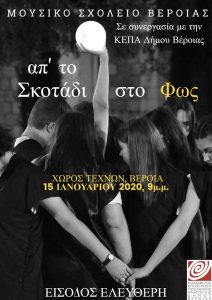 Την Τετάρτη 15 Ιανουαρίου 2020 στις 9:00 μ.μ. στο Χώρο ΤεχνώνΤο σύνολο Έκφρασης και Δημιουργίας του Λυκείου του Μουσικού Σχολείου Βέροιας, θα…