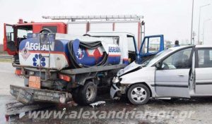Τροχαίο ατύχημα σημειώθηκε το Σάββατο 18 Ιανουαρίου 2020 περί ώρα 13.00 στην Αλεξάνδρεια Ημαθίας, συγκεκριμένα στο τροχαίο ενεπλάκη βυτιοφόρο…