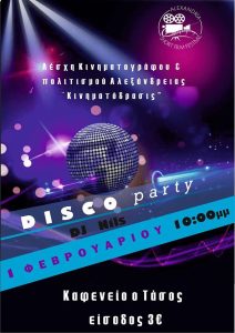 Φέτος οι Απόκριες έρχονται νωρίτερα στην Αλεξάνδρεια! Disco party από την Λέσχη Κινηματογράφου και Πολιτισμού “ΚΙΝΗΜΑΤΟΔΡΑΣΙΣ”